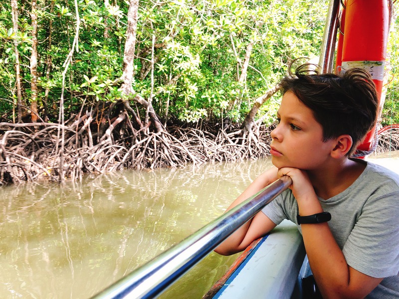 Óriási élmény, hogy egy a tengerben gyökerező fákból álló hatalmas (mangrove) erdőben hajóztunk órákon át, ahol hegynyi sziklák emelkednek ki, egészen elvarázsolt világ látszatát keltve. A süvítő motorcsónakból úgy tűnik, mintha némelyik sziget lebegne a víz felett, ahogy kimosták a sziklák alját a hullámok.